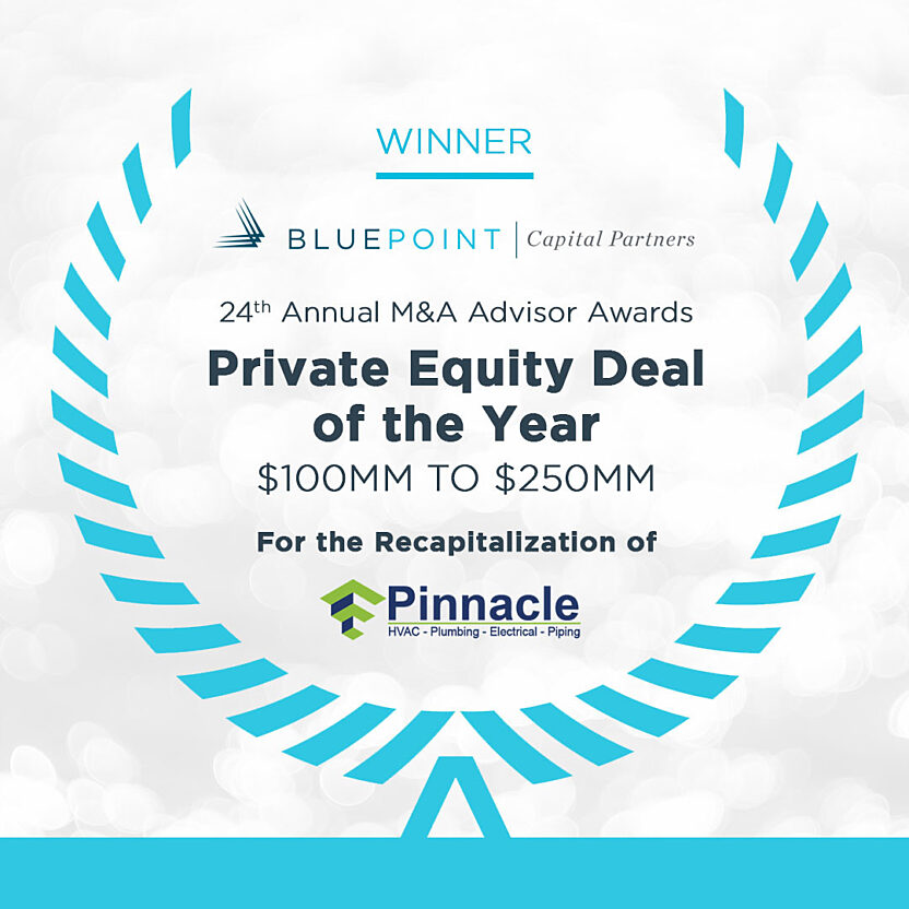 Pinnacle MEP Holdings, a leading HVAC, plumbing and electrical services platform with a strong Midwest presence, continues to raise the bar, and we couldn’t be prouder. A huge thank-you to the teams at both Blue Point and Pinnacle, whose dedication, sharp execution and grit turned this deal into an award-winning one. This win truly belongs to all of us.